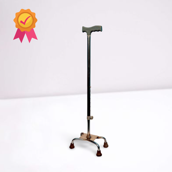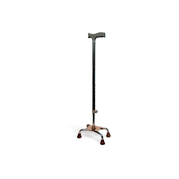 Walking Stick 4 Leg BD. A walking stick with 4 legs, also known as a quad cane, is a mobility aid designed to provide extra stability and support to individuals who have difficulty walking. It is especially helpful for people who require more support than a regular walking stick or cane can provide.